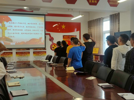 活动上,杨玉锋老师介绍了本次活动的简要内容和重要意义,主要是让学生党员学习习近平总书记在考察清华大学时发表的重要讲话,广大青年要肩负历史使命,坚定前进信心,立大志、明大德、成大才、担大任,让青春在为祖国、为人民、为人类的不懈奋斗中绽放绚丽之花。最后,在杨玉锋老师的带领下,全体学生党员庄严重温入党誓词。