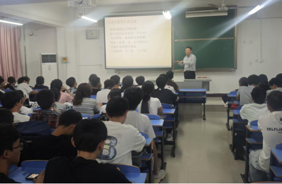 9月30日,十大买球的正规网站党委副书记张涵在A07-111教室为2025级机器人工程和电子信息工程专业讲开学第一课。新生辅导员代表参加。