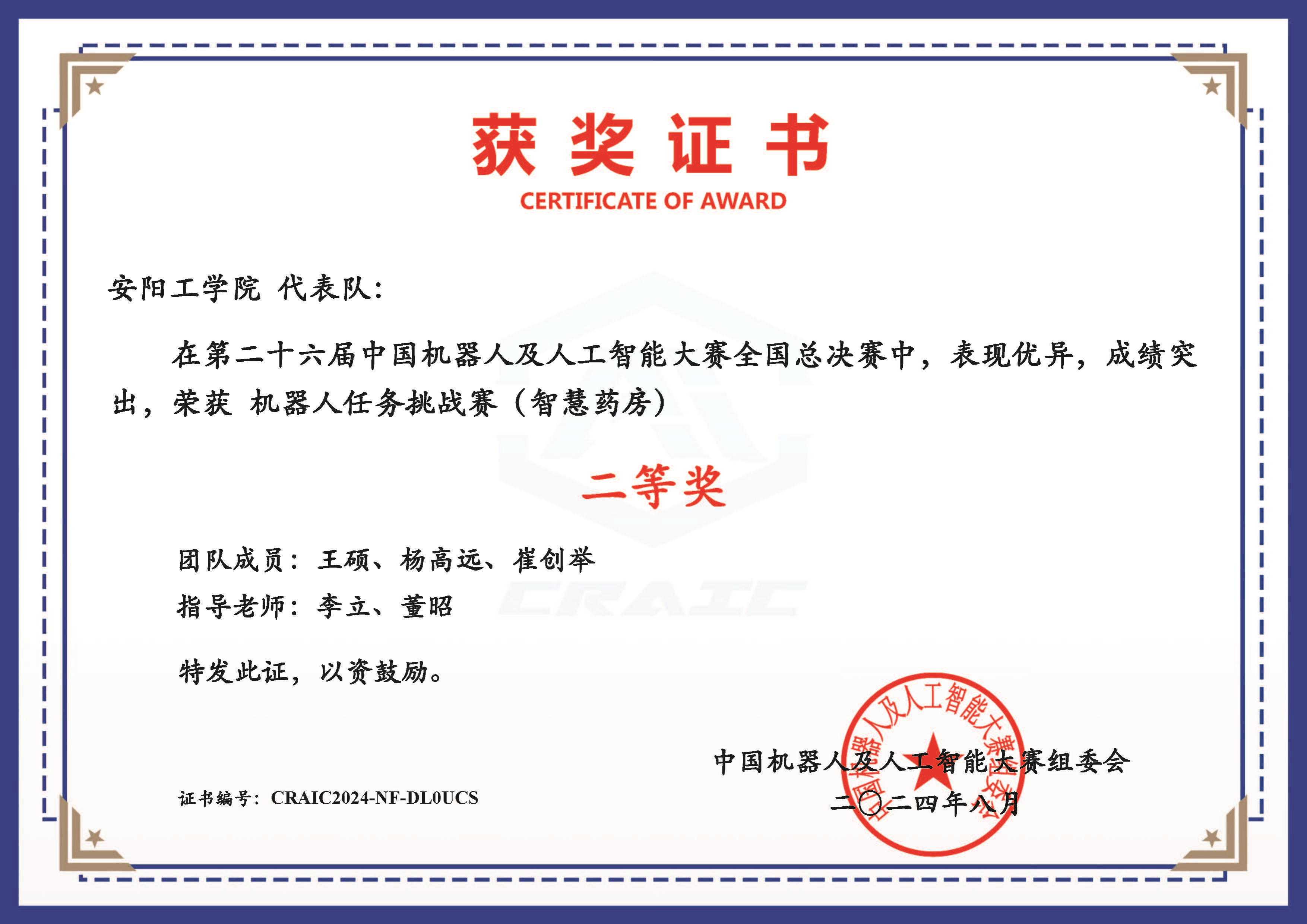 获奖证书