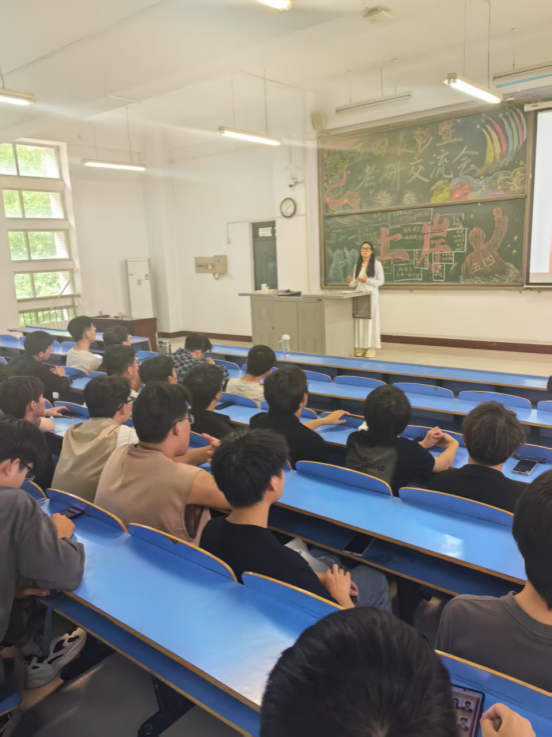 表彰结束后,学院邀请了10位在2025年考研中取得优异成绩的学生代表分享经验。他们分别从从考研院校与专业选择、复习时间规划等方面展开分享,并介绍了备考技巧。