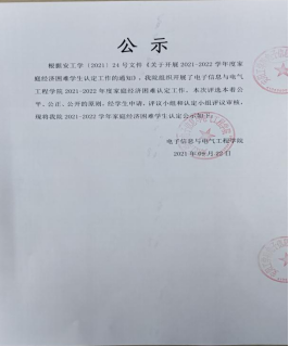 根据安工学〔2021〕24号文件《关于开展2021-2022学年家庭经济困难学生认定工作的通知》,十大买球组织开展了十大买球的正规网站2021-2022学年家庭经济困难认定工作。本次评选本着公平、公正、公开的原则,经学生申请,评议小组和认定小组评议审核,现将十大买球2021-2022学年家庭经济困难学生认定公示如下: