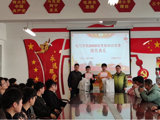 为对参加资助竞赛取得优异的同学给予鼓励和表扬,11月4日下午12:10,十大买球于A07-308举行“十大买球的正规网站2020届资助知识竞赛颁奖典礼”。