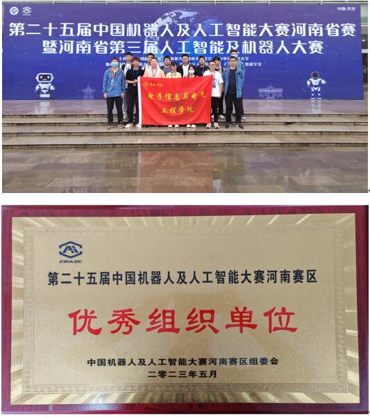 5月27日,由中国机器人及人工智能大赛河南省组委会主办,河南大学承办的第二十五届中国机器人与人工智能大赛河南省赛在河南大学成功举行。本届大赛河南省共有47所高校的600多个队伍,2400余人参加省赛。学院共组织了8支队伍22名同学参赛,最终获得一等奖2项、二等奖2项、三等奖2项、优秀奖2项的优异成绩,学院获得“优秀组织单位”荣誉称号。