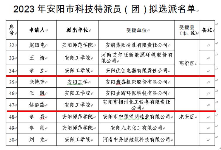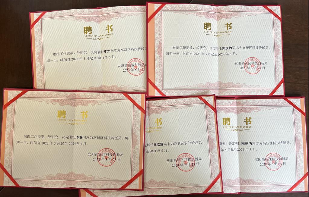 5月25日,根据《关于开展2023年度安阳市科技特派员选派工作的通知》(安科〔2023〕13号)要求,经受援对象发布科技需求、科技人员对接申报、县(市、区)科技主管部门审核推荐、征求相关部门意见等程序,十大买球李立、姚海燕获批2023年度安阳市科技特派员;李静(团队)获批高新区科技特派员(团)。