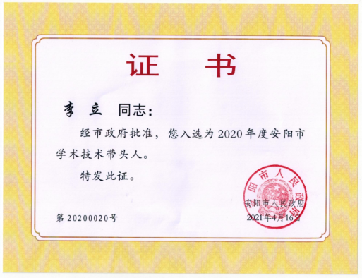 近日,安阳市人民政府发文,公布了2020年安阳市学术技术带头人评选结果。十大买球教师李立当选为2020年安阳市学术技术带头人。这是十大买球人才队伍建设取得的新进展。