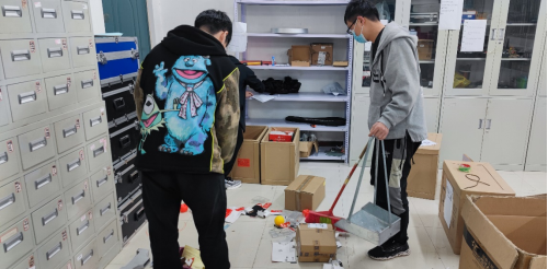 在老师的带领下,同学们对所属实验室的实验器材、实验台和地面进行清理,同时对消防安全和用电规范等进行安全检查。