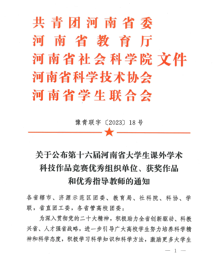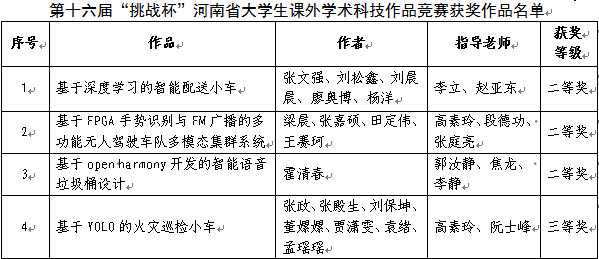 近日,由共青团河南省委、河南省教育厅、河南省科学技术协会、河南省社会科学院、河南省学生联合会共同举办的第十六届“挑战杯”河南省大学生课外学术科技作品竞赛获奖名单公布,在学院的高度重视和精心组织安排下,十大买球在本届竞赛中获得优异成绩,由李立、高素玲、郭汝静等老师指导的学生团队获得二等奖3项,三等奖1项。