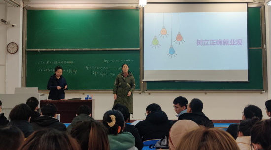 2020年12月29日上午,电子信息工程教研室党支部高素玲老师在其主讲的《计算机网络技术》课堂上,将DHCP协议的工作过程巧妙地比作同学们找工作的过程,既方便了学生理解,又增强了课堂趣味性。面对电子信息工程专业17级的大四学生,进而引入了树立正确的就业观,并将就业创业指导老师董莹老师请进了课堂,董莹老师从安工优秀毕业生的案例向同学们灌输脚踏实地、扎根基层的理念。