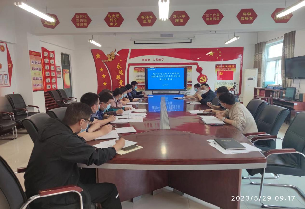 2023年5月29日上午,电子信息与电气工程学院2023年学位评定委员会分会第一次会议在A07-308召开,会议由学院学位评定委员会分会副主任段德功主持,学院学位评定委员会分会全体委员出席会议。